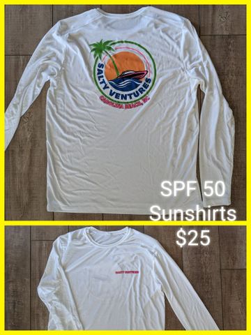 One of a kind SALTY VENTURES sunshirt providing ultimate SPF 50 protection. High-performance moisture wicking. Just what you need for a day out on the boat! Multiple colors available.