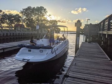 Approximately 2 hours (usually 6:30-8:30) to enjoy a serene evening cruising the Carolina Beach Yacht Basin with a glass of wine or your preferred beverage before heading through Snow's Cut to watch the sunset on the Cape Fear River. The "Golden Hour" on the water is magical! Enjoy this time with your partner or in a group.